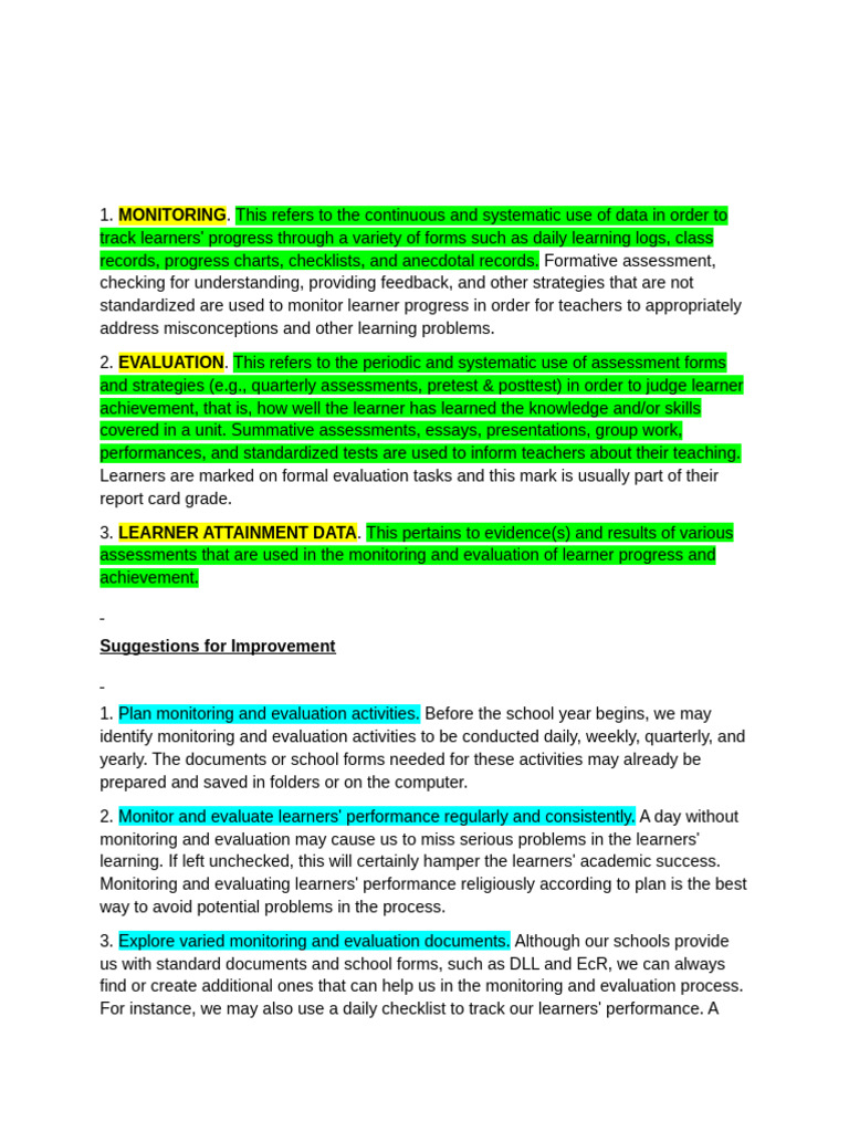 5. Involve the learners in certain types of monitoring and evaluation. Monitoring and