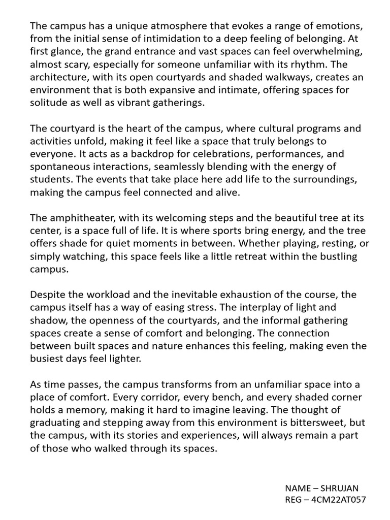 The campus has a unique atmosphere that evokes a range of emotions,