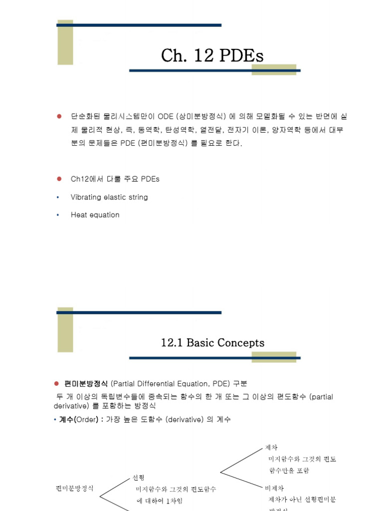 • 정형화된 해법이 있는 것이 아니다. 따라서 PDE 유형에 따라 해법이 다르다.