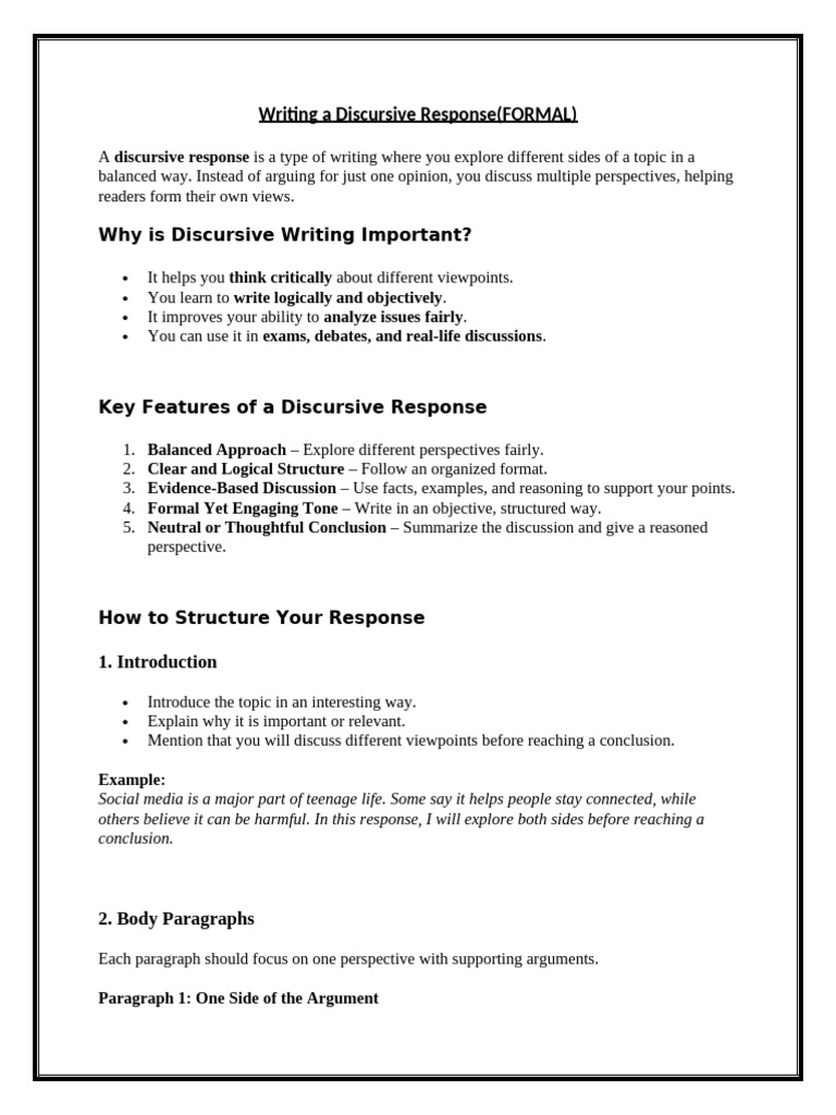 Writing a Discursive Response(FORMAL)