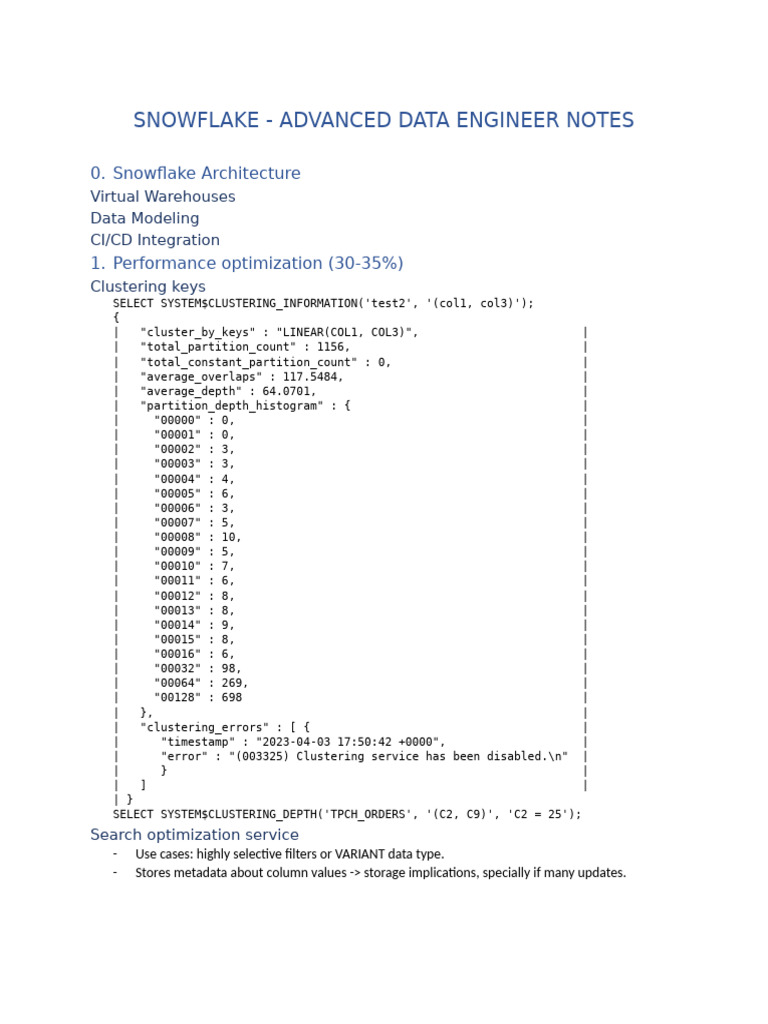 SNOWFLAKE - ADVANCED DATA ENGINEER NOTES