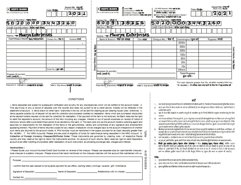 such items are returned to the account holder, 6. PAN Number must be mentioned in the space provided for all Cash deposits greater than
