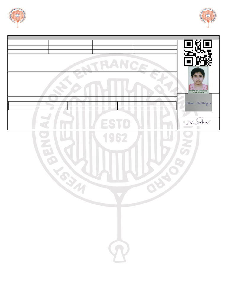 Name of the Candidate USHASI CHATTERJEE Roll Number 4223801332