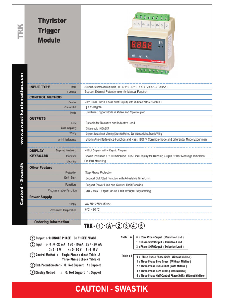 2 Input :- 0 : 0 - 20 mA 1 : 0 - 10 mA 2 : 4 - 20 mA 2 : Phase Shift Output ( Inductive Load )
