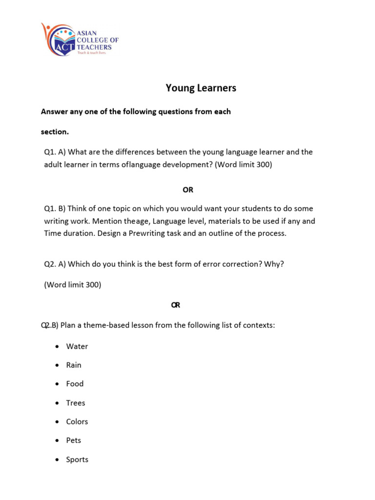 Q1. A) What are the differences between the young language learner and the