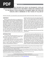 Eligibility criteria This review included all full-text, randomised and non-randomised clinical trials and observational studies, published in any language, which presented the outcomes of patients who were conservatively managed following a lateral patellar dislocation. Publications assessing patients who reported primary patellar dislocation and recurrent dislocations were included. Papers where subjects presented with patellofemoral pain syndrome, patellar subluxation or generalised patellar instability symptoms, and did not report a convincing patellar dislocation, were excluded. In addition, where it was not possible to differentiate between clinical results following conservative compared with surgical procedures, papers were excluded. Finally, editorials, comments and letters, and cadaver and animal studies were also excluded. Study identication Two reviewers (TS, LD) independently reviewed all titles and abstracts that were identied from the search strategy. Full-text manuscripts for all potentially eligible studies were ordered. These were independently reviewed by each of the reviewers a second time in respect of the predened eligibility criteria. Data extraction Data extraction for each eligible paper was performed independently by two reviewers (TS, LD) using a predened spreadsheet. The reviewers spreadsheets were amalgamated to create an agreed extraction form. Data extracted included: