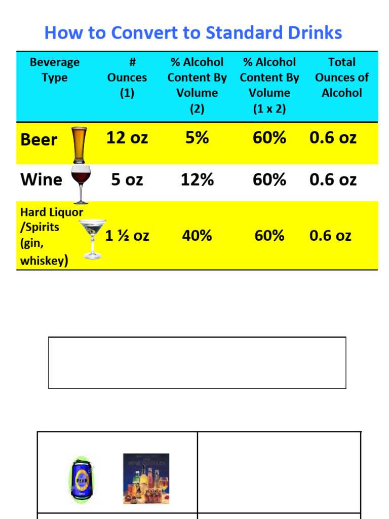 Standard Drink Equivalents Approximate Number of Standard