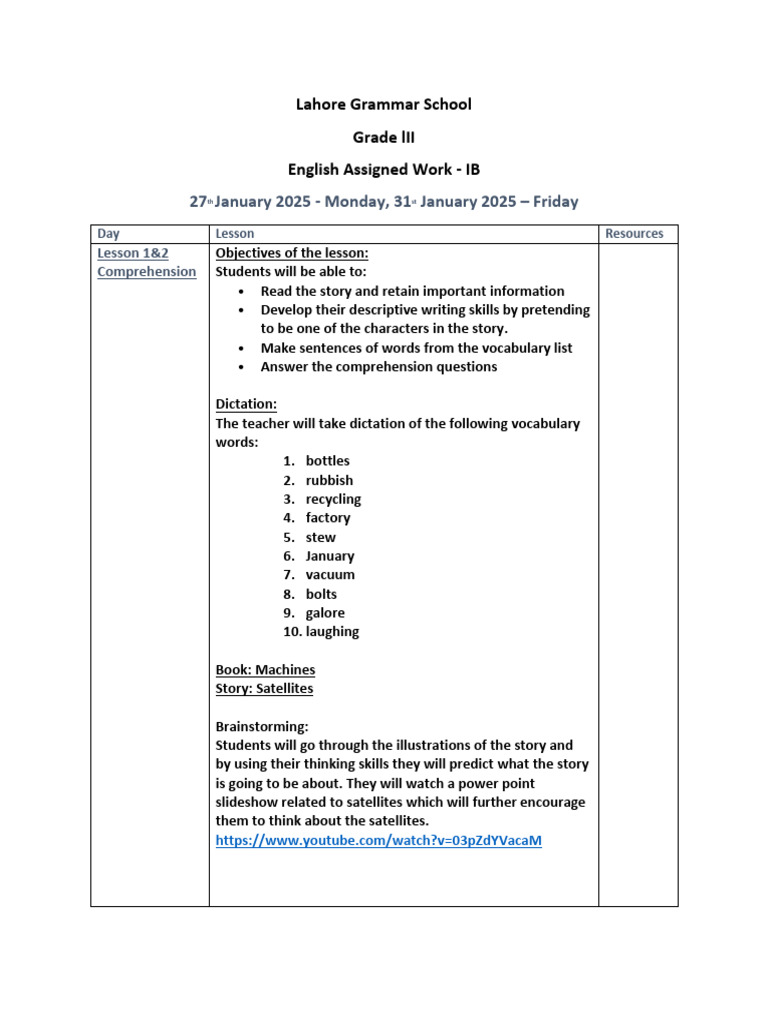 Day Lesson Resources