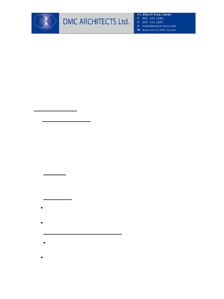 • Contractor to include a PC Sum of €2,000 for lettering and signage.