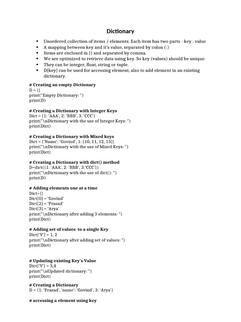 Dict[2] = ‘Prasad'