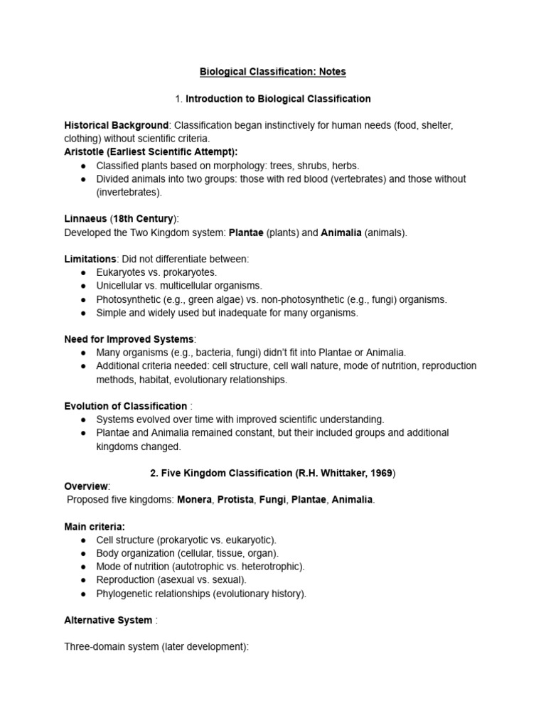 Biological Classification: Notes