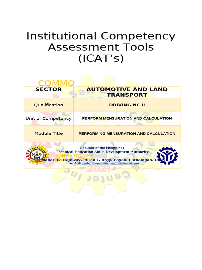 Unit of Competency PERFORM MENSURATION AND CALCULATION