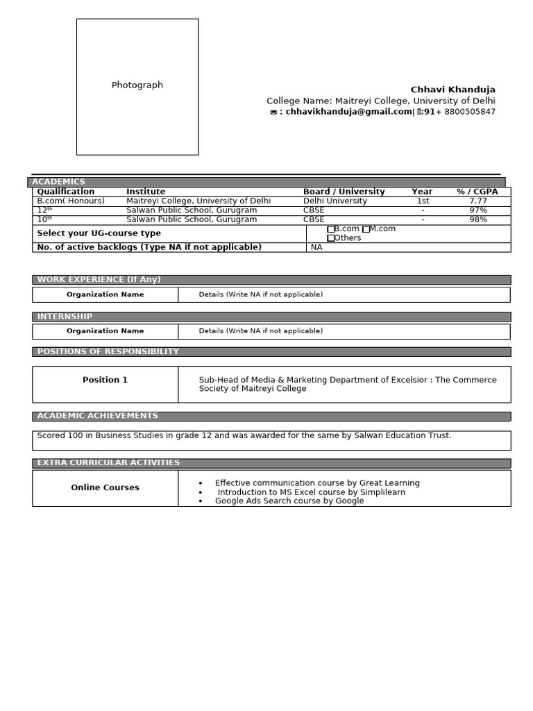 B.com( Honours) Maitreyi College, University of Delhi Delhi University 1st 7.77