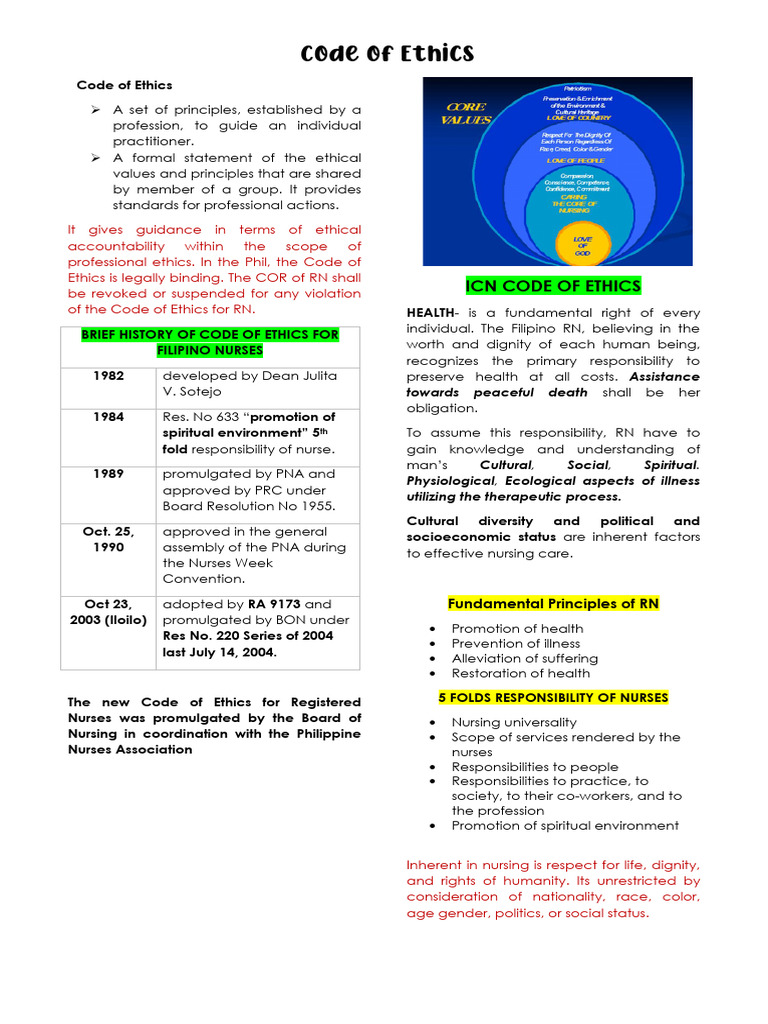 BRIEF HISTORY OF CODE OF ETHICS FOR individual. The Filipino RN, believing in the
