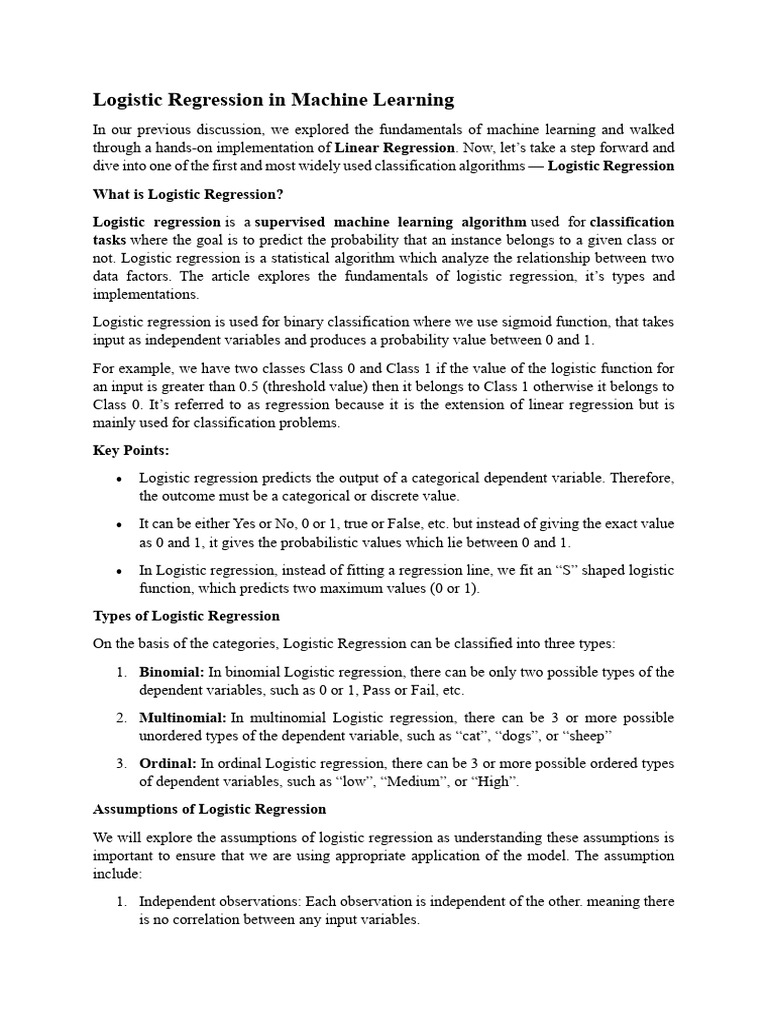 data factors. The article explores the fundamentals of logistic regression, it’s types and