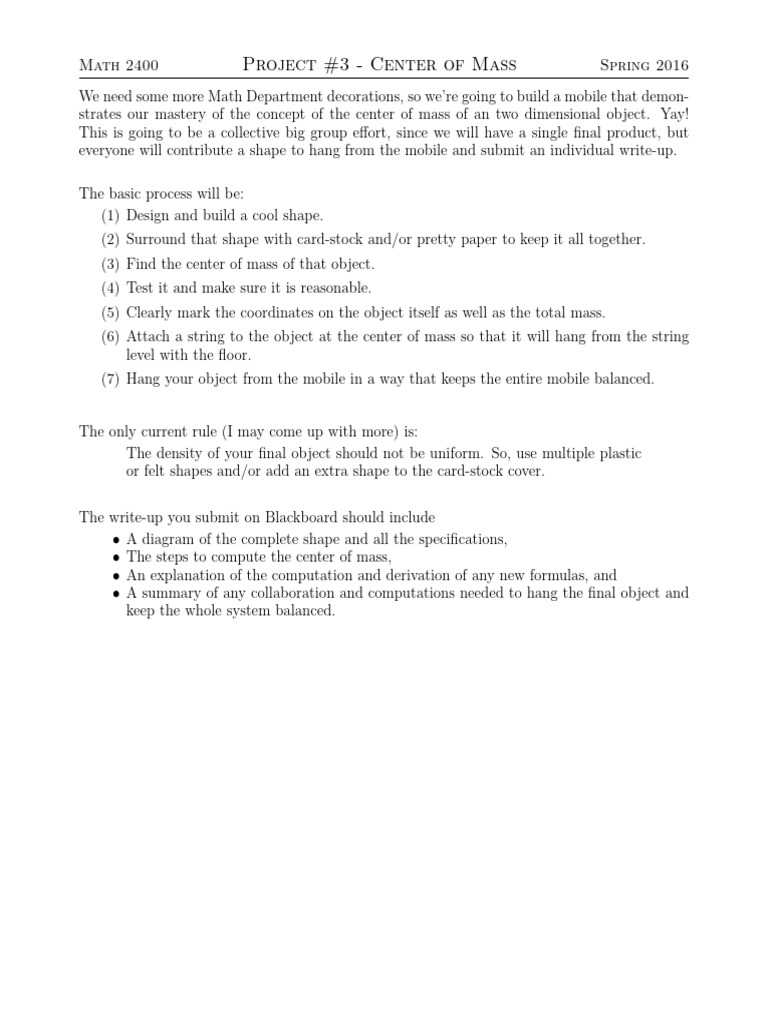 Math 2400 Project #3 - Center of Mass Spring 2016