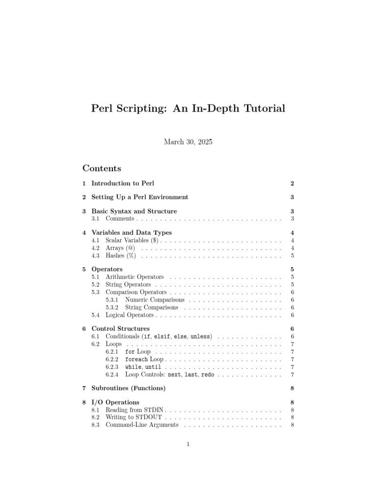 7. Testing: Use testing frameworks like Test::Simple or Test::More.