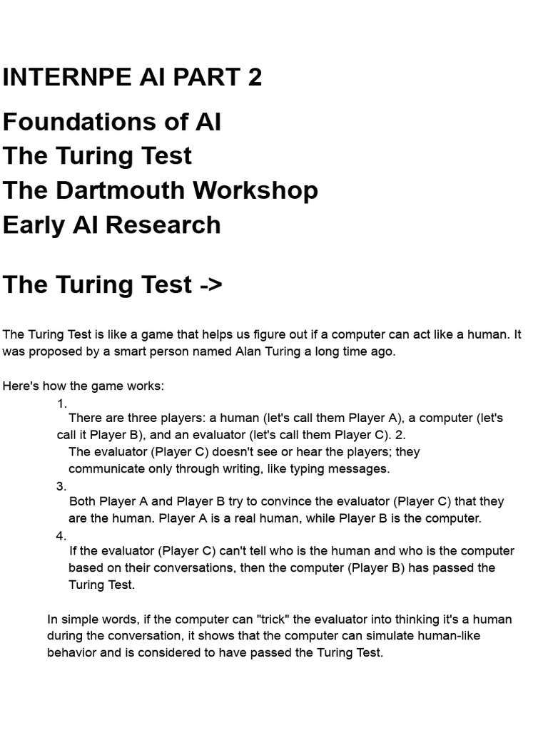 The Turing Test is like a game that helps us figure out if a computer can act like a human. It