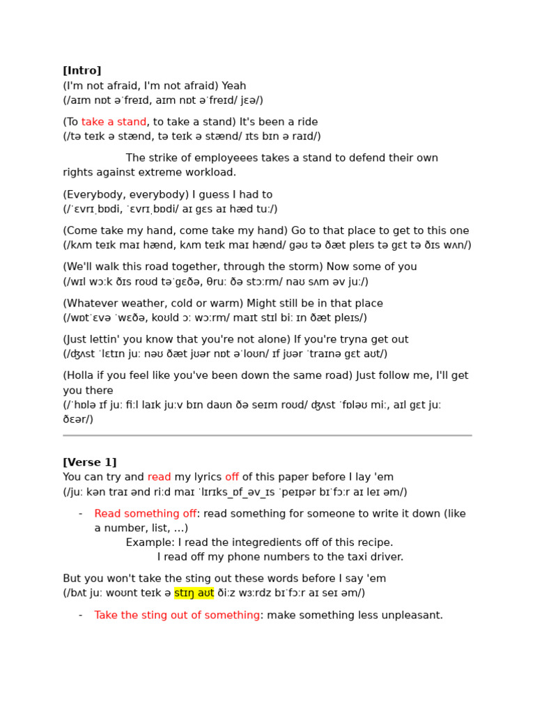 (/tə teɪk ə stænd, tə teɪk ə stænd/ ɪts bɪn ə raɪd/)