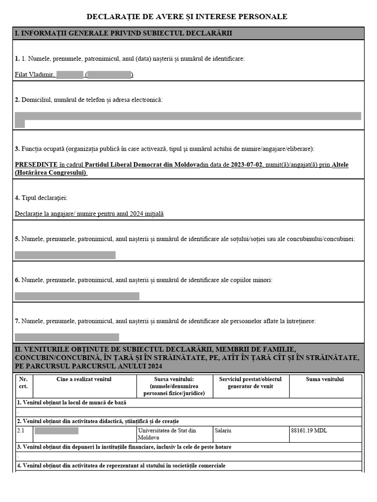 Persoana fizica 2023 2025 0 1000000.00 Leu moldovenesc Filat Vladimir