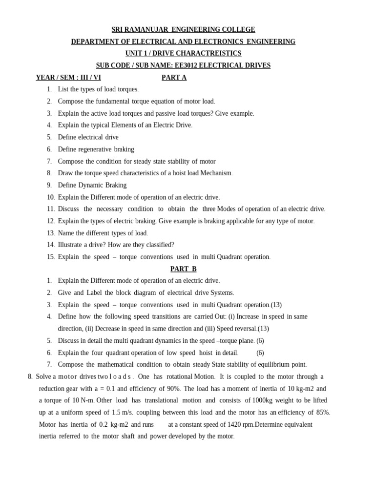 SUB CODE / SUB NAME: EE3012 ELECTRICAL DRIVES