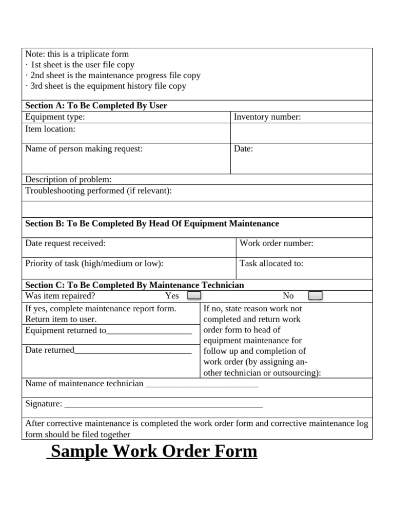 Sample Work Order Form