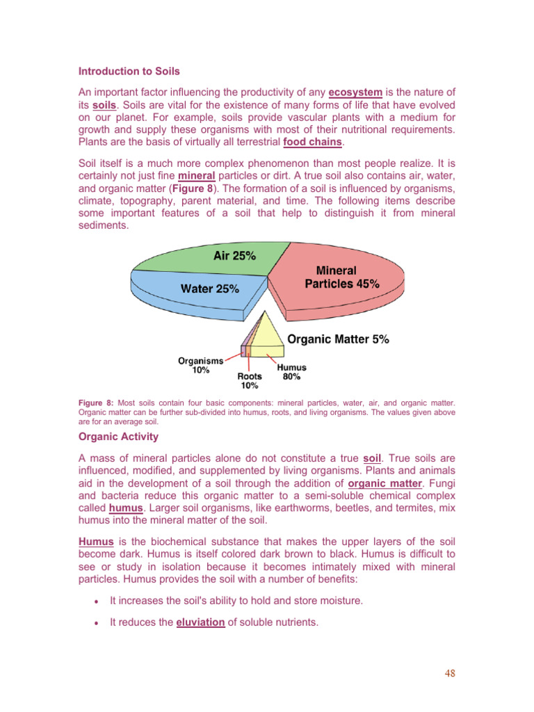 and organic matter (Figure 8). The formation of a soil is influenced by organisms,