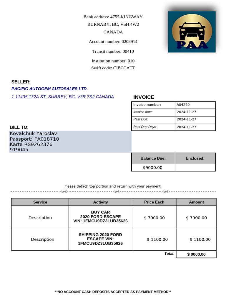 1-11435 132A ST, SURREY, BC, V3R 7S2 CANADA INVOICE