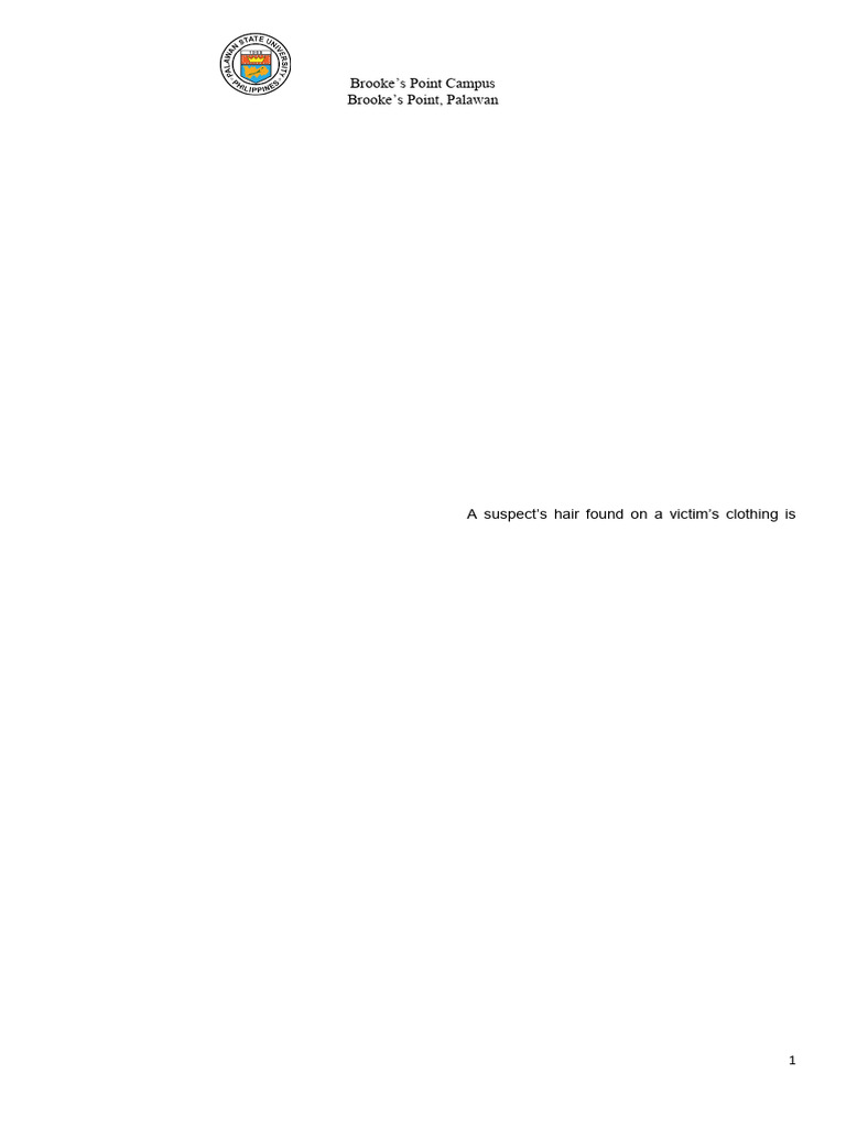 evidence? 10. A suspect’s hair found on a victim’s clothing is