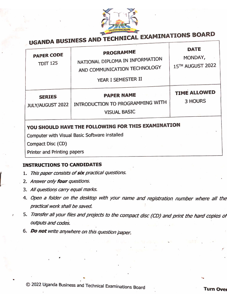 Save Ubteb Past Papers Introduction to Programming With... For Later UGANDA BUSINESS AND TECHNICAL EXAMINATIONS BOARD