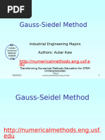 The document presents a flowchart for the Gauss-Seidel method, a numerical technique used to solve linear equations. It outlines the iterative process involved in the method. The flowchart serves as a visual guide for implementing the Gauss-Seidel algorithm.