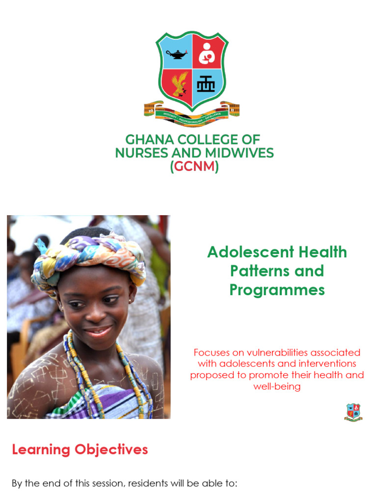 Ghana Health service (n.d.) Adolescent Health Training Manual for
