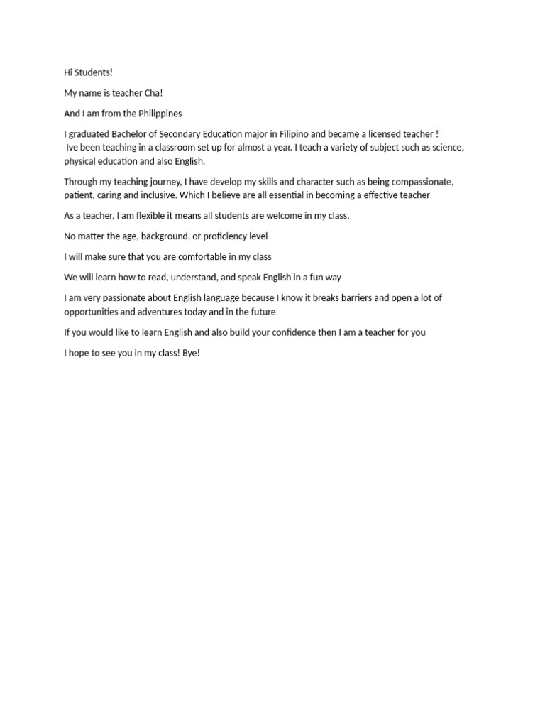 My name is teacher Cha!