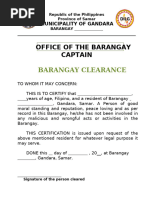 Issued on Gandara, Samar Brgy. Secretary