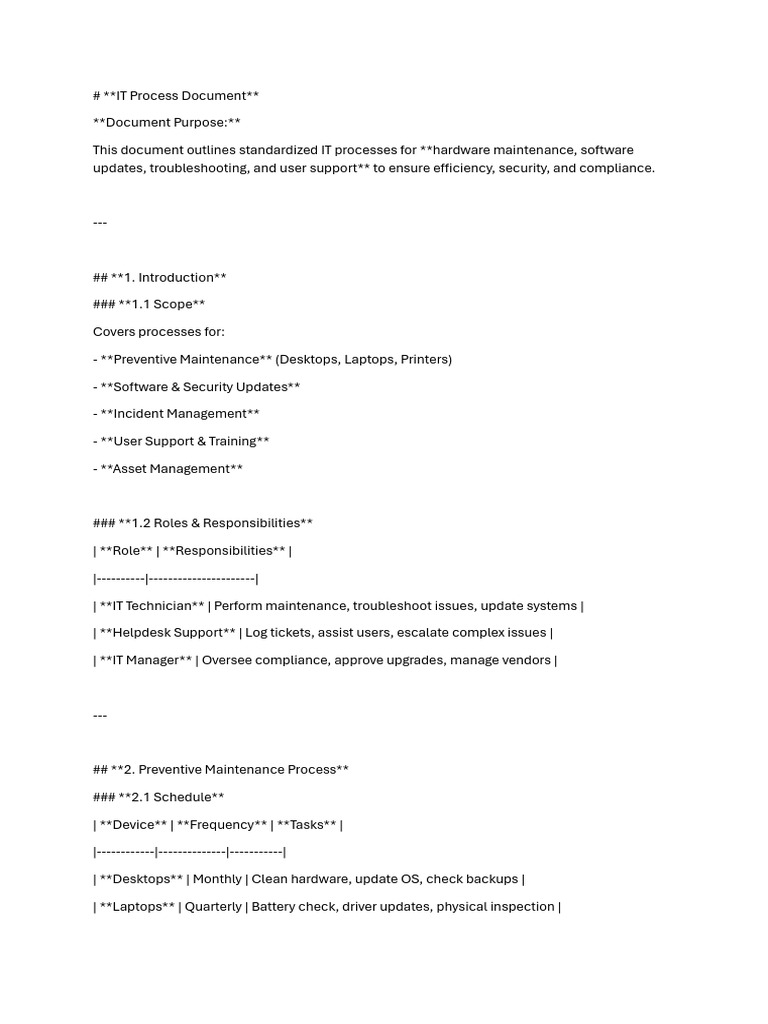 - **Escalation:** Unresolved issues → IT Manager within 2 hours.