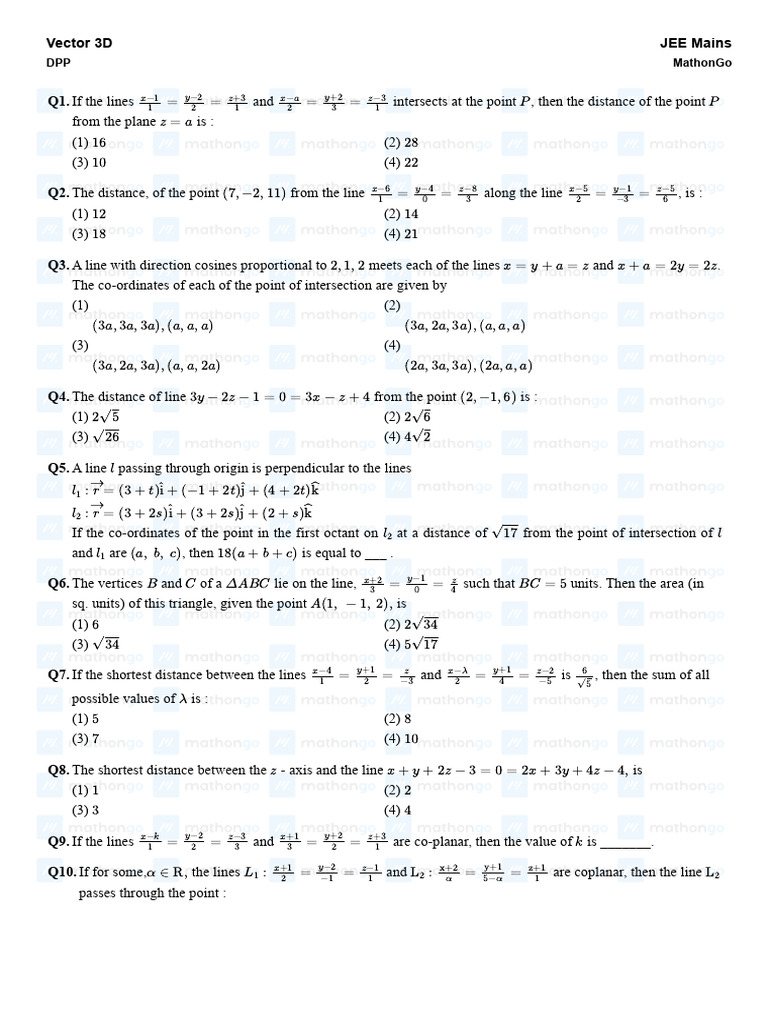 Q10. If for some,α ∈ R, the lines L and L are coplanar, then the line L