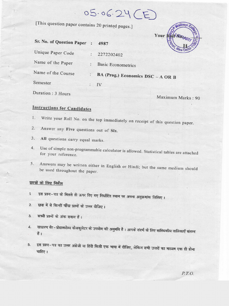 1. Write your Roll No. on the top immediately on receipt of this question paper.