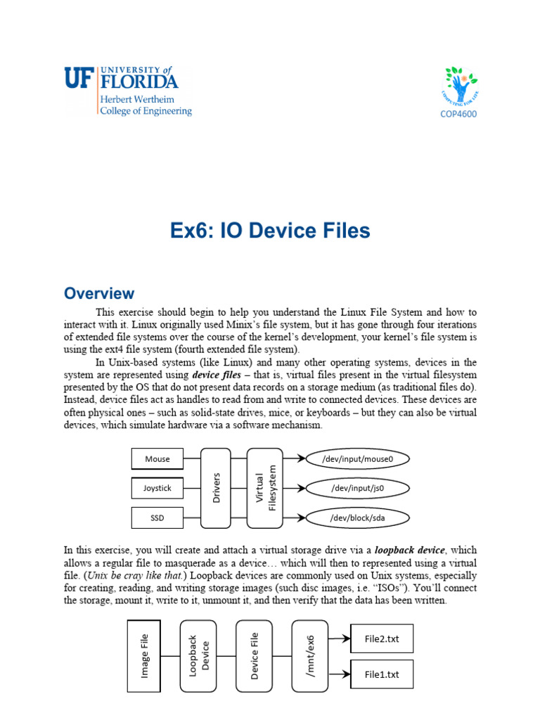 ext4 format using mkfs, and then mount the loopback device on /mnt/ex6 via mount.