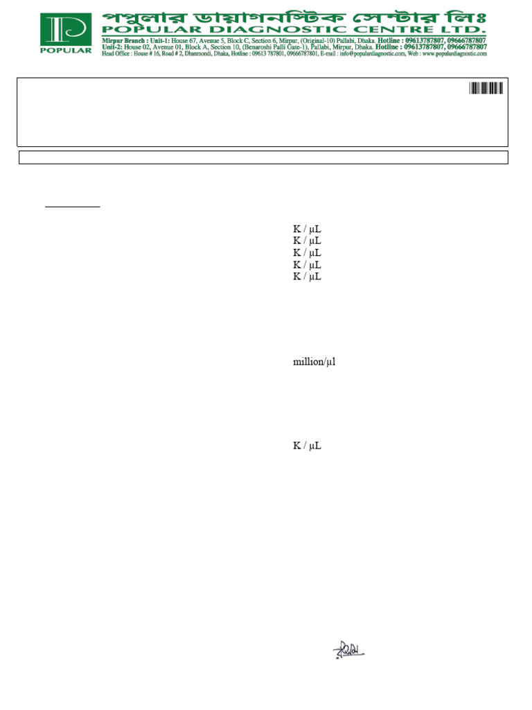 Referred By Prof. Dr. Md. Emdadul Haque .MBBS.BCS. Report Date 26/02/2025 7:23PM