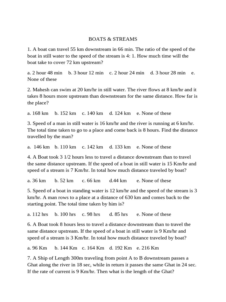 1. A boat can travel 55 km downstream in 66 min. The ratio of the speed of the