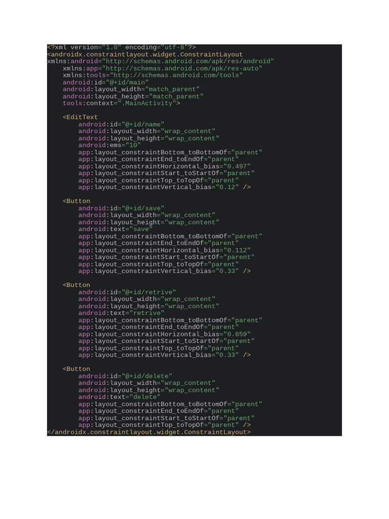 android:text="retrive"