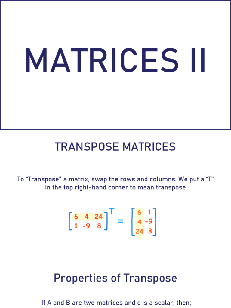 To “Transpose" a matrix, swap the rows and columns. We put a “T"