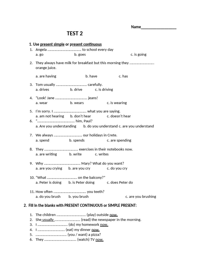 2. Fill in the blanks with PRESENT CONTINUOUS or SIMPLE PRESENT:
