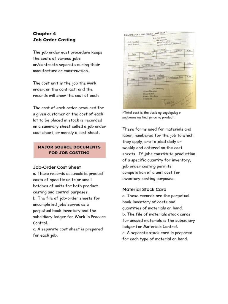 Job-Order Cost Sheet job order costing permits
