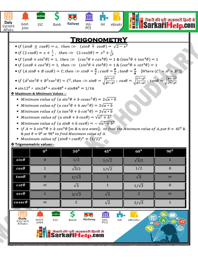 Trigonometric values:-