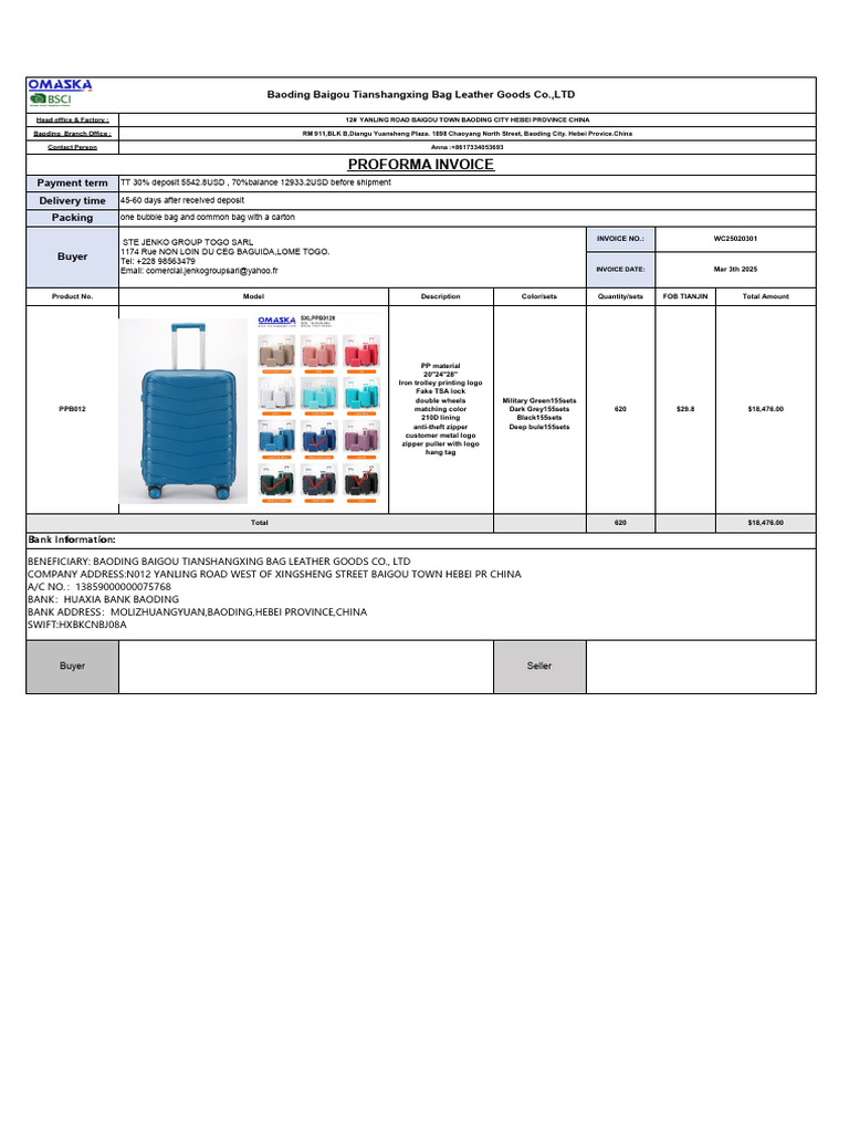 Email: comercial.jenkogroupsarl@yahoo.fr INVOICE DATE: Mar 3th 2025