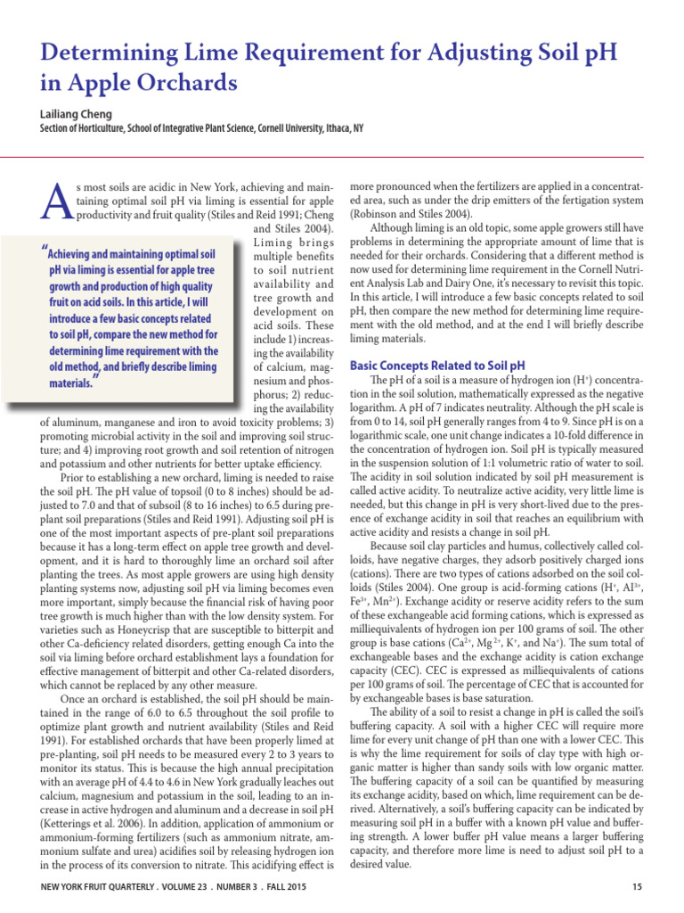 pH via liming is essential for apple tree to soil nutrient now used for determining lime requirement in the Cornell Nutri-