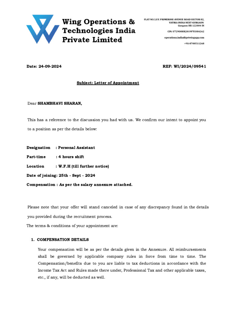 This has a reference to the discussion you had with us. We confirm our intent to appoint you