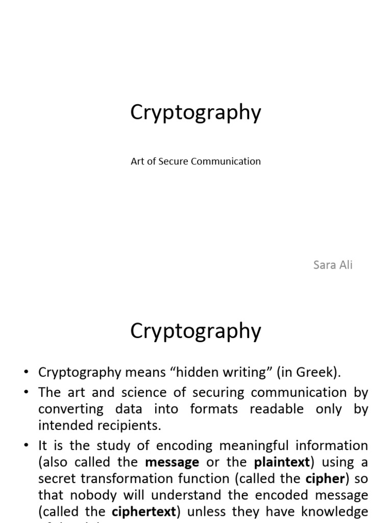 • Cryptography means “hidden writing” (in Greek).