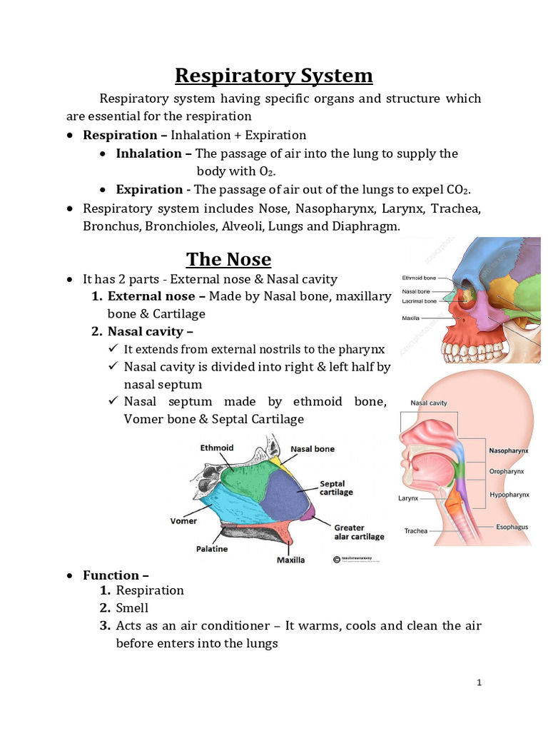 Respiratory system includes Nose, Nasopharynx, Larynx, Trachea,